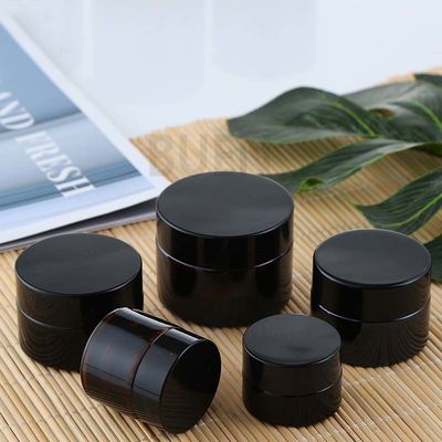 kosmetisches Glasgefäß des bernsteinfarbigen Sahneglasgefäßschwarz-Deckels